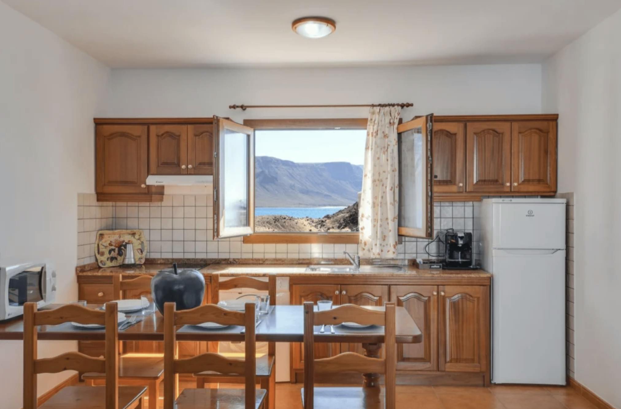 Entre las comodidades adicionales se incluyen wifi, lavadora y televisión por cable. Además, el apartamento cuenta con una terraza privada descubierta, equipada con mesa y sillas, donde podrá relajarse bajo el sol canario.